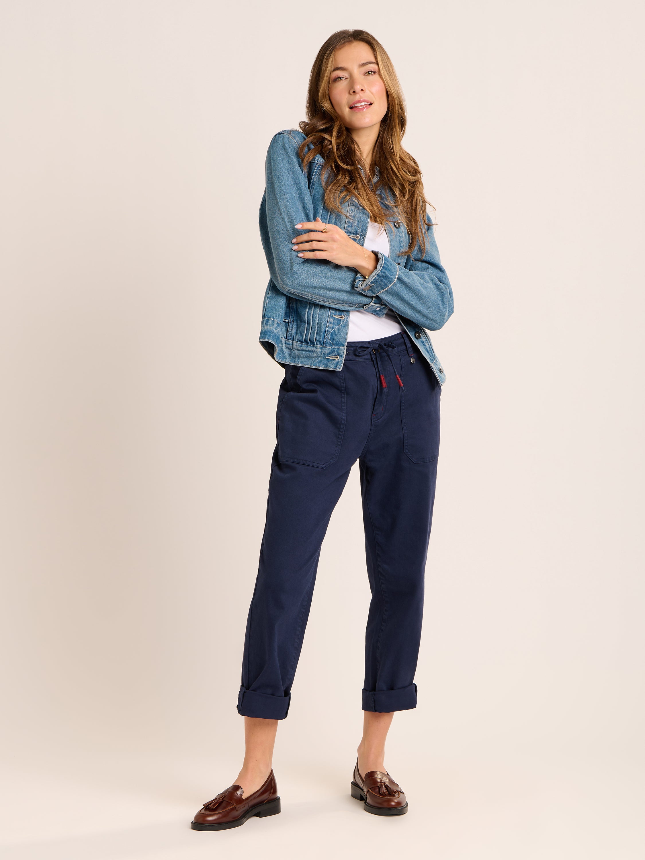 Our women's trousers are versatile wardrobe essentials that combine comfort with smart-casual style, suitable for year-round wear. In denim, corduroy, and soft viscose, they offer a range of fits and textures to suit both workdays and relaxed weekends. Pair them with a blouse or a lightweight top for a polished office look, or dress them down with a casual tee for everyday outings. Explore our shorts for warmer days, our cord trousers for cooler months, or our classic jeans for an easygoing option that works effortlessly across your wardrobe.