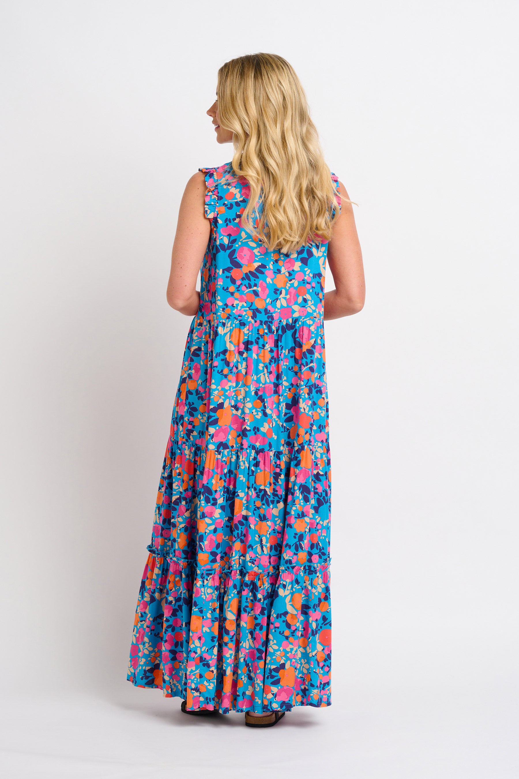 Looking for the perfect summer occasion dress? Meet the Bloom Floral Maxi. Fastened by buttons at the top of the garment, it also has pockets and a full, tiered skirt. With this bold print and relaxed fit it looks just as good with sandals as with more casual footwear.