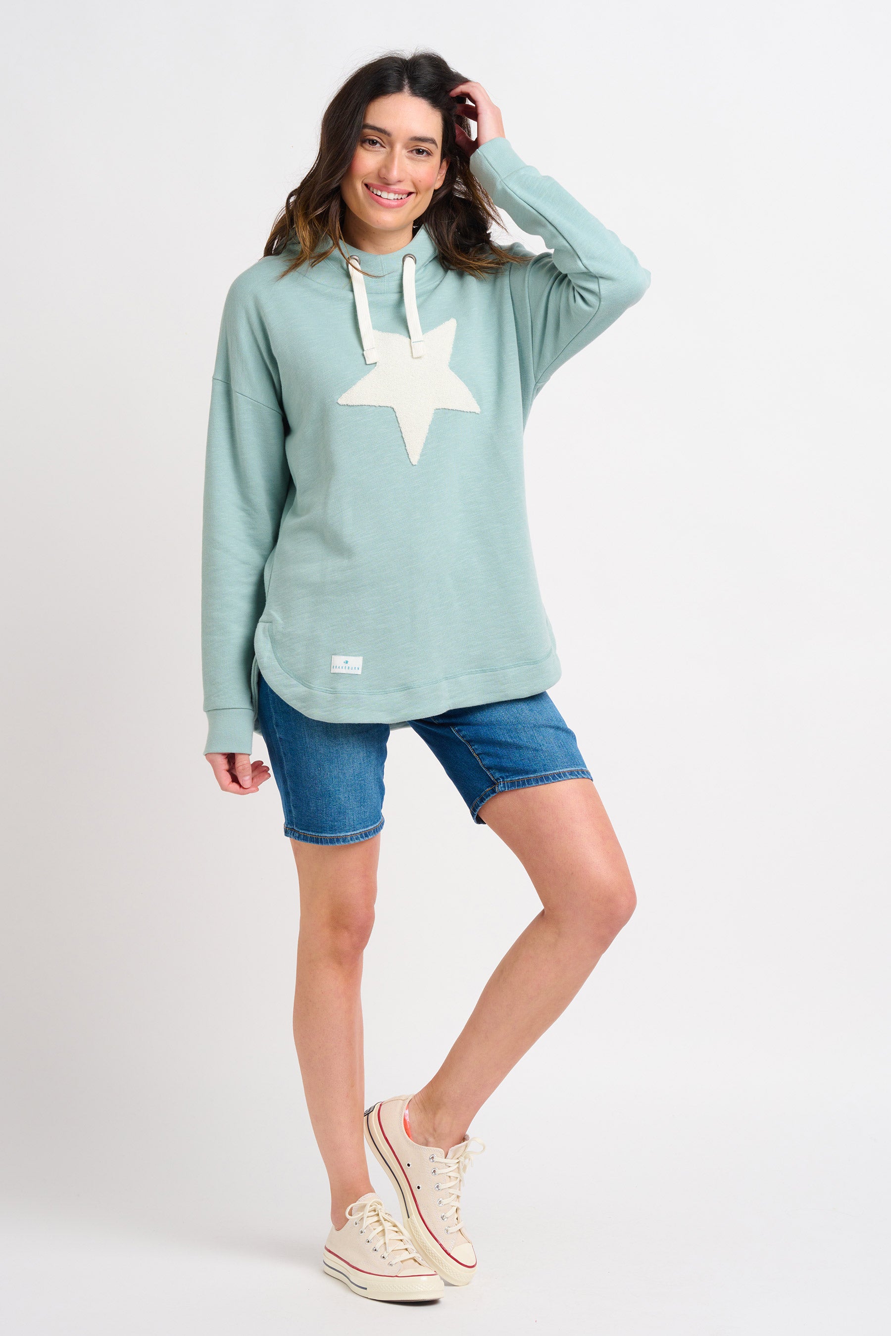 This hoodie is 100% cotton, making it a light and soft cover-up for long summer evenings. With a textured bouclé star on the chest and a curved hem with side splits, this cool and comfortable piece will take you from season to season.